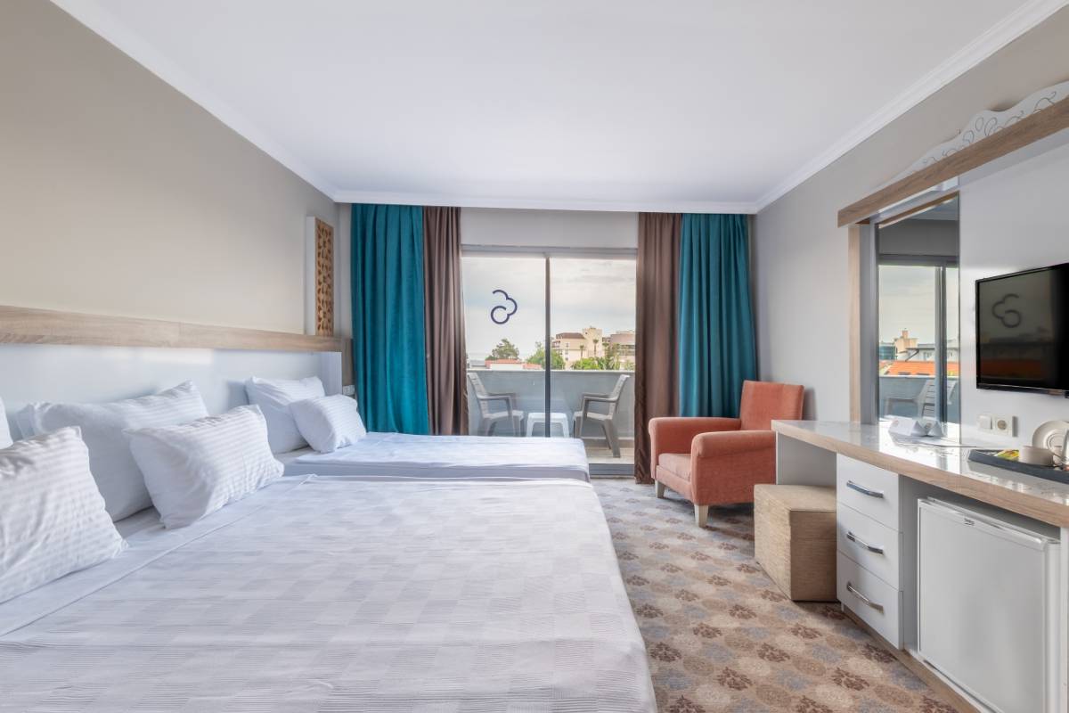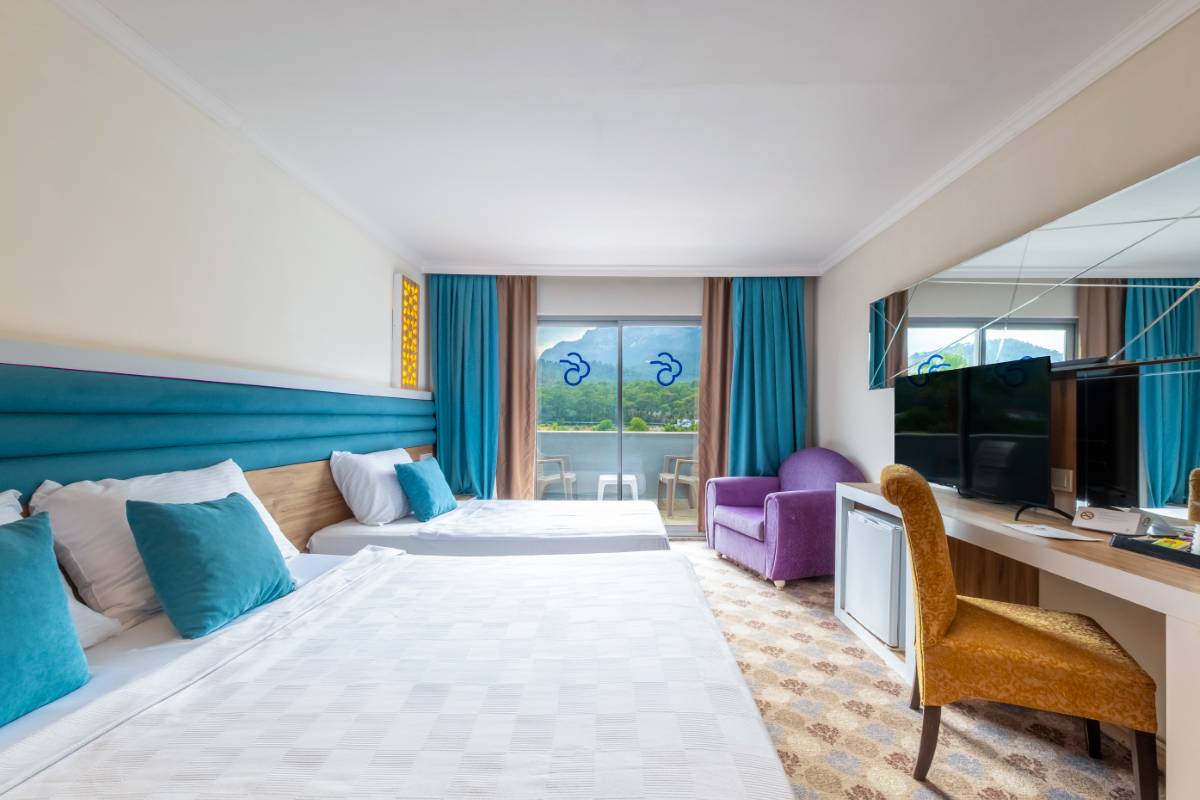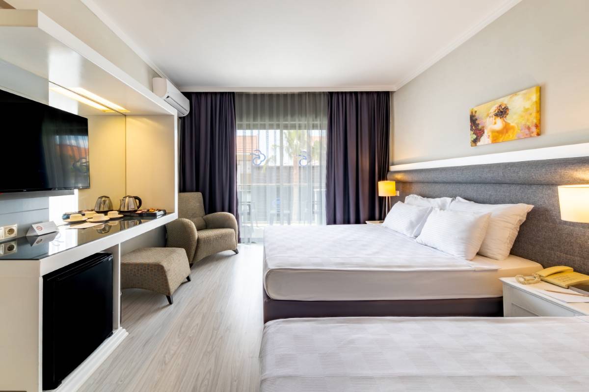 Dedeman Kemer Resort'un Bahçe Manzaralı Superior Odası, ferah iç mekanları ve doğayla iç içe konumuyla huzurlu bir tatil deneyimi sunuyor. Şık tasarımı ve konforlu olanakları ile misafirlerine rahatlık ve dinlence sunar.