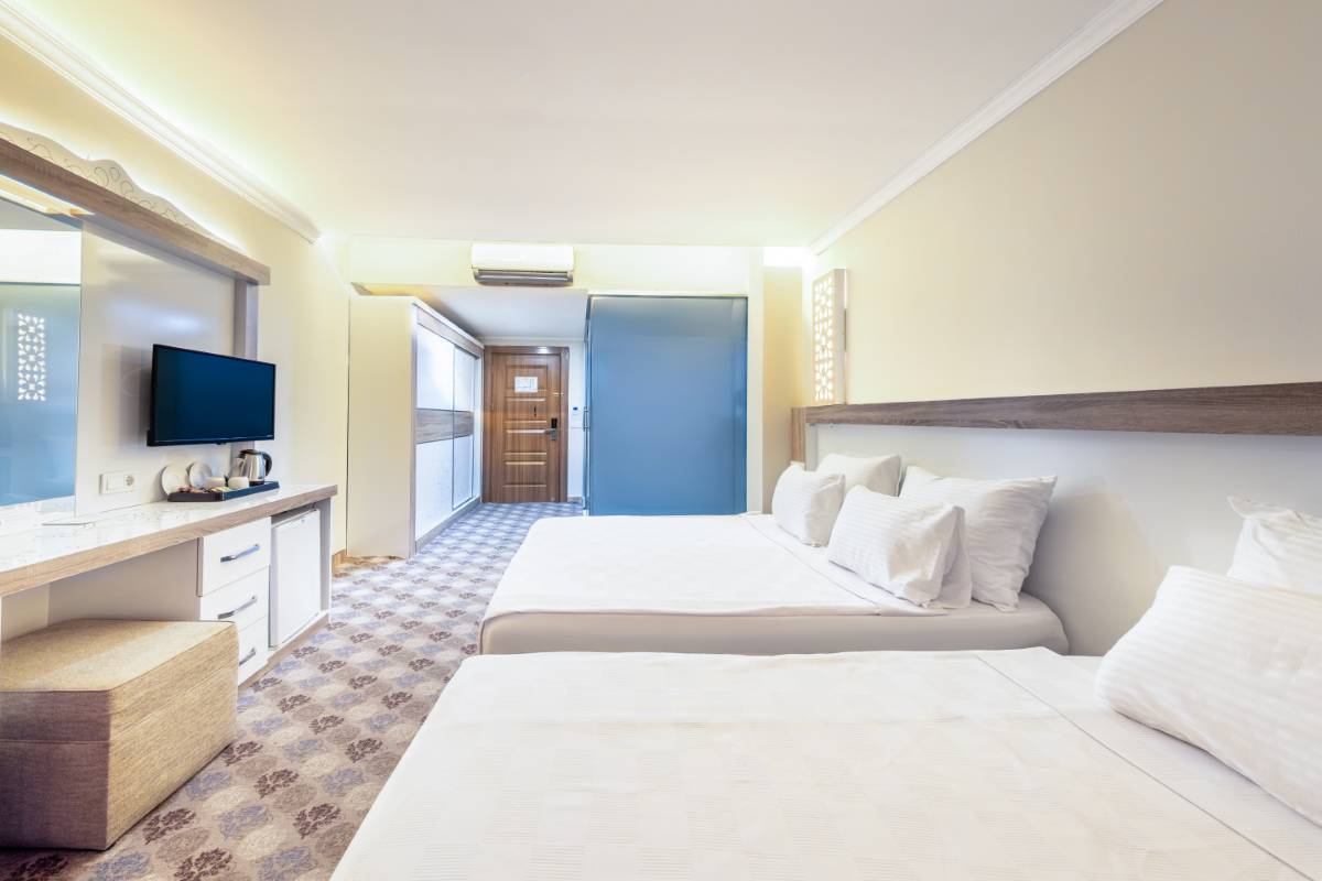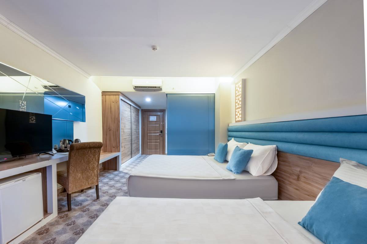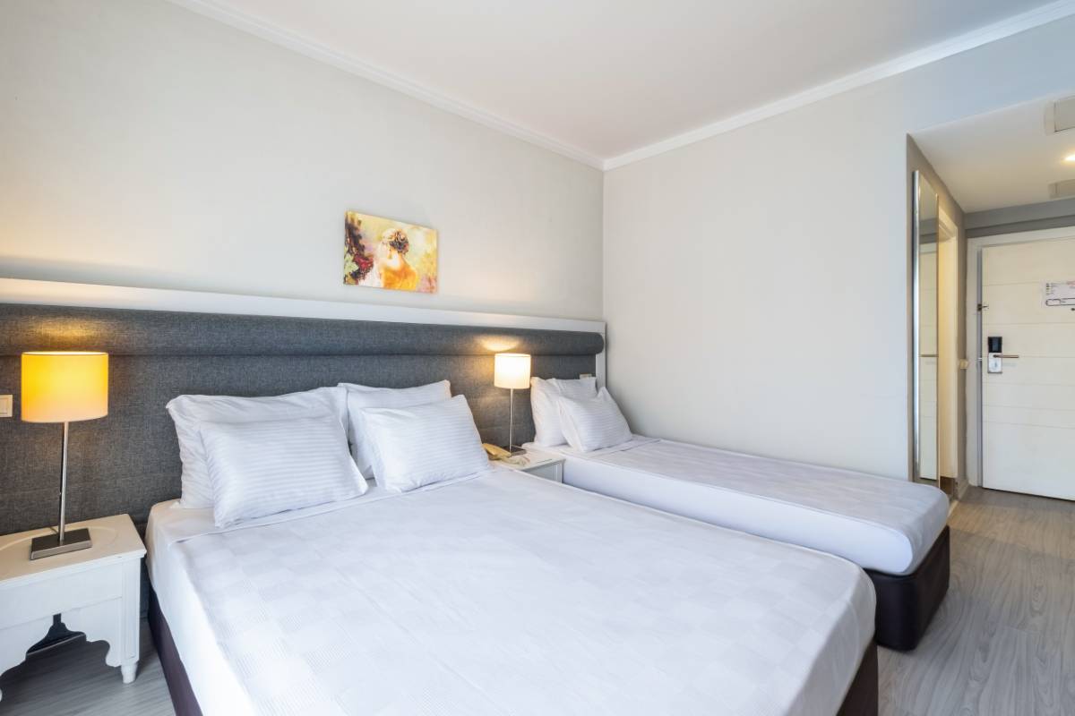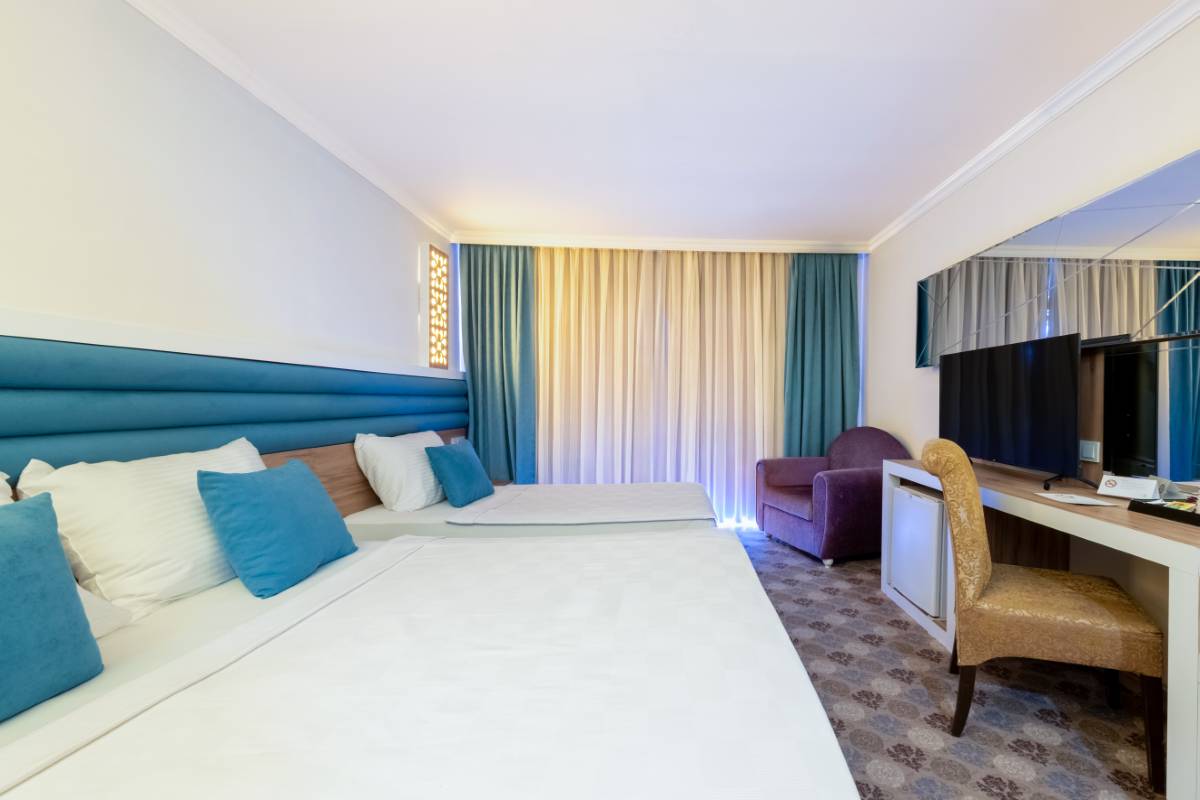 Dedeman Kemer Resort'un Bahçe Manzaralı Superior Odası, ferah iç mekanları ve doğayla iç içe konumuyla huzurlu bir tatil deneyimi sunuyor. Şık tasarımı ve konforlu olanakları ile misafirlerine rahatlık ve dinlence sunar.