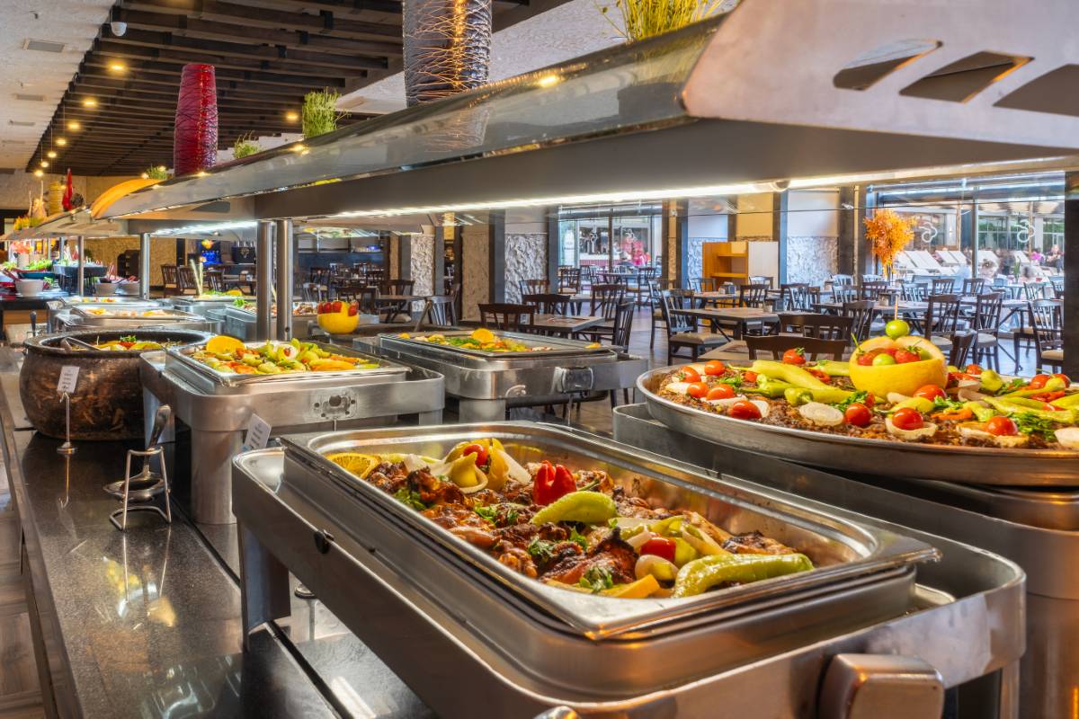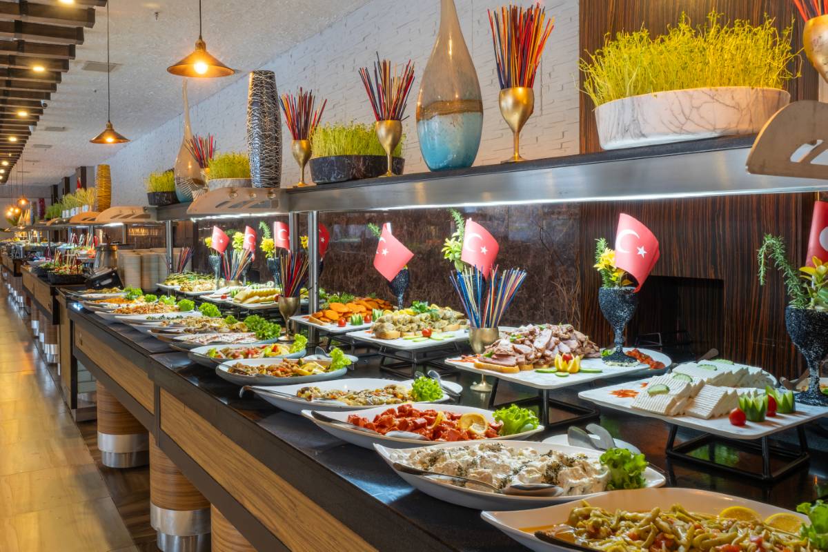 Sabah kahvaltısı, öğle ve akşam yemeği açık büfe olup, tesisin belirlemiş olduğu bazı import içecekler, yerli alkollü içecekler , sıcak ve soğuk alkolsüz içecekler 09:00 ile 00:00 saatleri arasında ücretsizdir. Saat 00:00 ile 10:00 saatleri arası çay, kahve ve su dışında tüm içecekler ücretlidir. Barlarda şişe ile içecek servisi yapılmamaktadır. Türk Kahvesi ücretsiz olarak sunulmaktadır. Tüm şişelenmiş yerli ve yabancı içecekler, yerli ve yabancı PREMIUM ve Özel içecekler, Taze sıkılmış meyve suları ücretlidir.